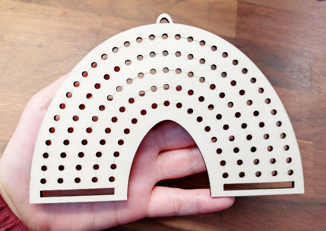 Macrame regnbåge i trä