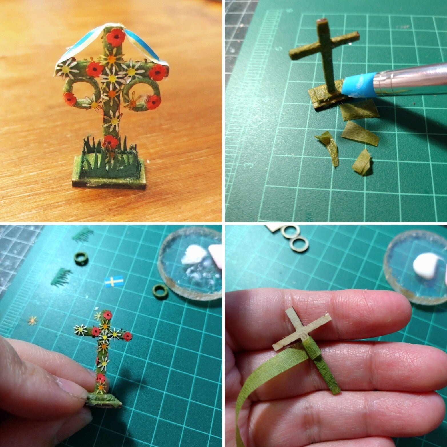 En söt miniatyr majstång i byggsatskit perfekt för dockskåpet eller som en dekorativ detalj. Höjd ca. 3,2 cm. I kitet finns stången, detaljerna som blommor, gräss och gul och blå band i papper. Instruktionhäfte medföljer.