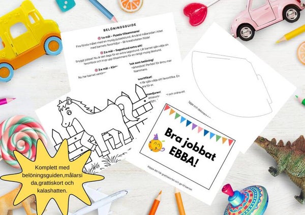 Grattiskort och partyhatt – allt för att fixa ett minikalas när barnet nått sitt mål!