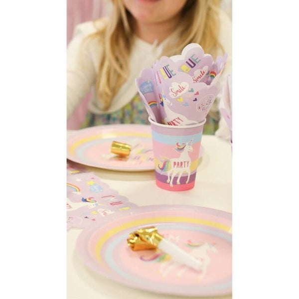 8st unicorn pappersmuggar. Perfekt till unicorntemat kalas.